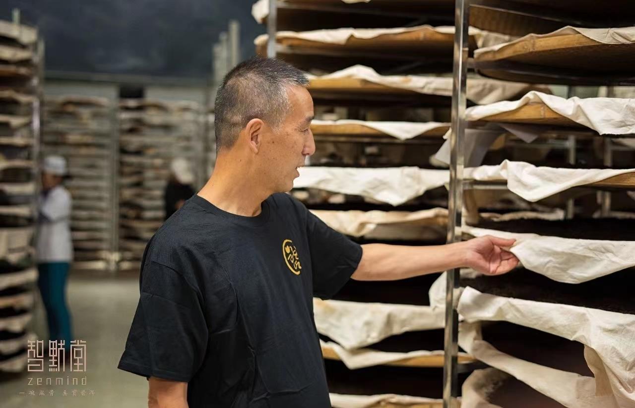 ▲制茶人金先生的工艺创新和突破成就了似“老茶味”的陈韵四喜熟茶。
