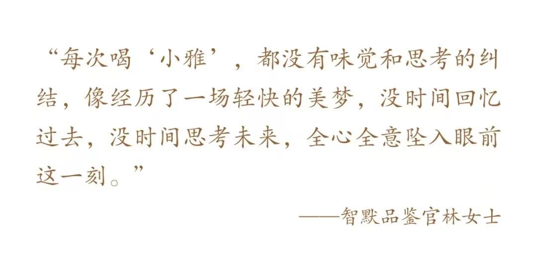 「小雅」在新茶期就已好喝,清幽但不空洞,甜出醇显,芬芳馥郁,舌尖能轻易感受香的更香,甜的更甜,甘的更甘,力的更力,润的更润,一种已经成熟的味定格住山川河流的美。蕞让人难忘的是,「小雅」自有一种高洁的气质,不甜俗不腻人,而人自趋之,永不厌倦。这种从容优雅的姿态用“小雅”命名,让喝茶的过程更赏心悦目,仿佛可以感受到“古树拥抱古树、一首歌亲吻另一首歌”的雅美意境,自己的气质也随着支棱起来。