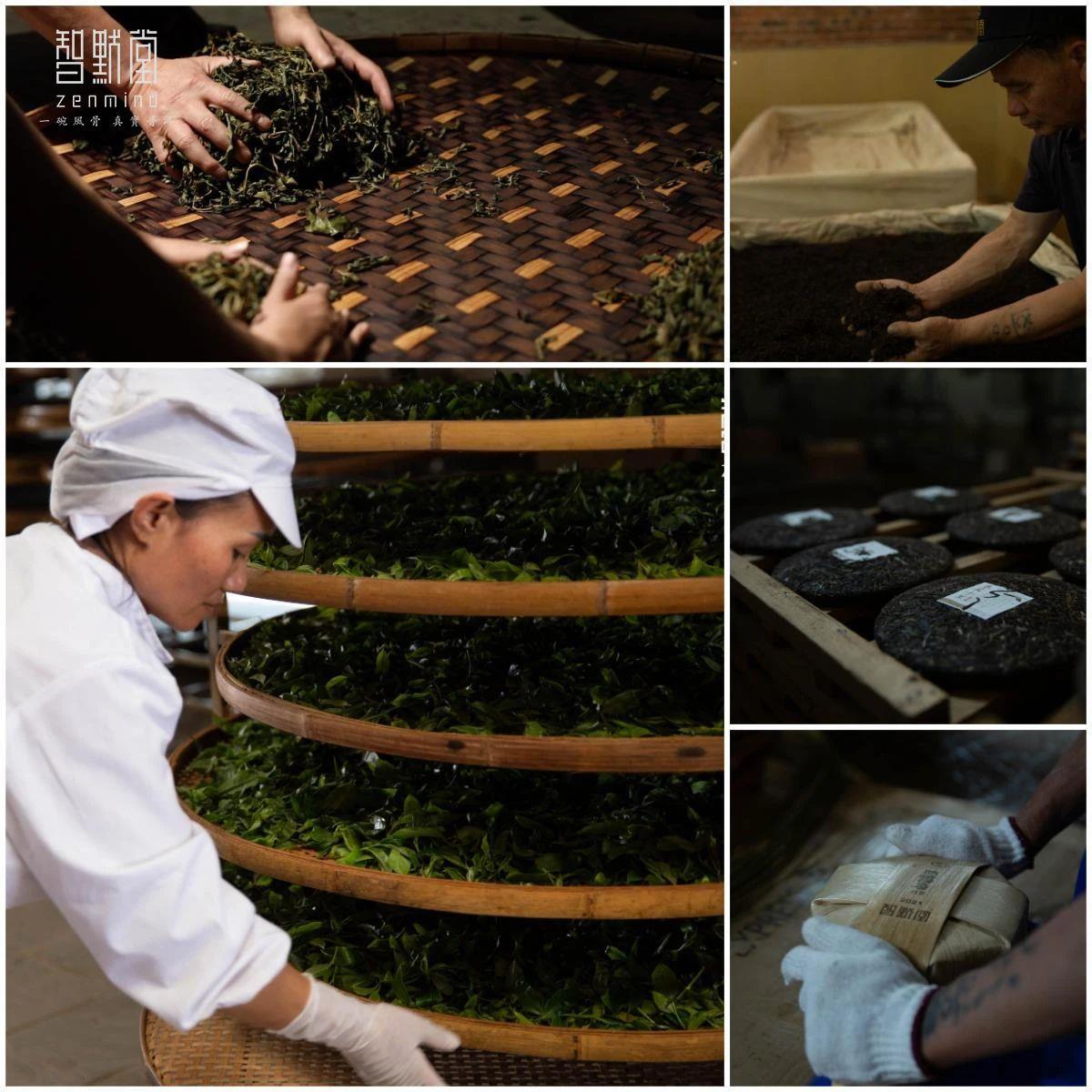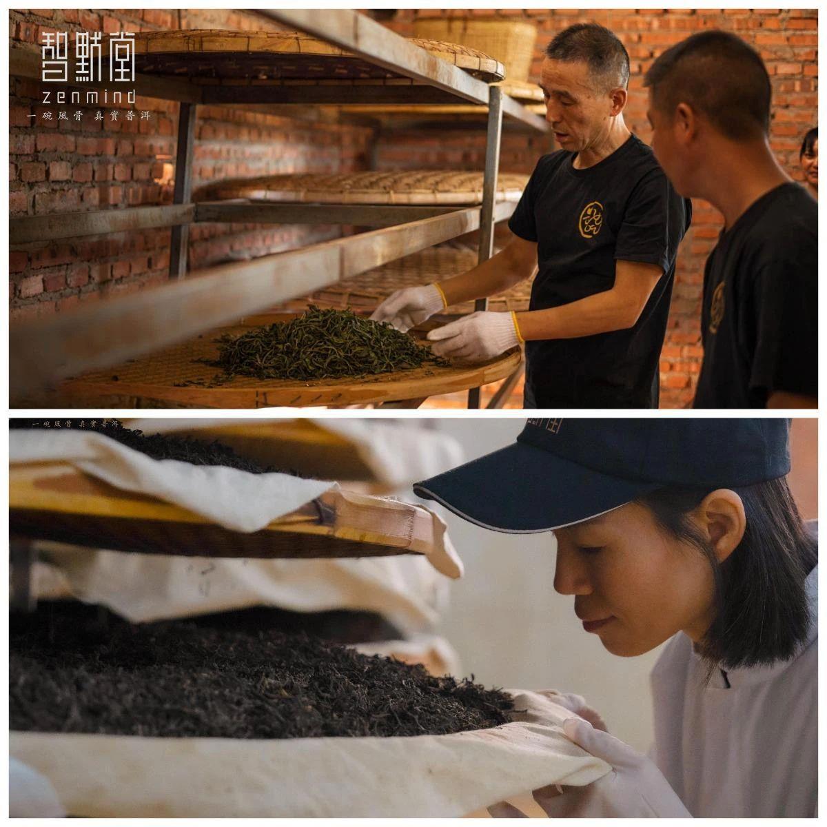 ③不染尘埃:从树梢到初制所再到茶厂,无论采摘、杀青、晒青,所有工序全程不落地,智默堂认为茶首先是食物,所以干净是智默堂的第一基因;
