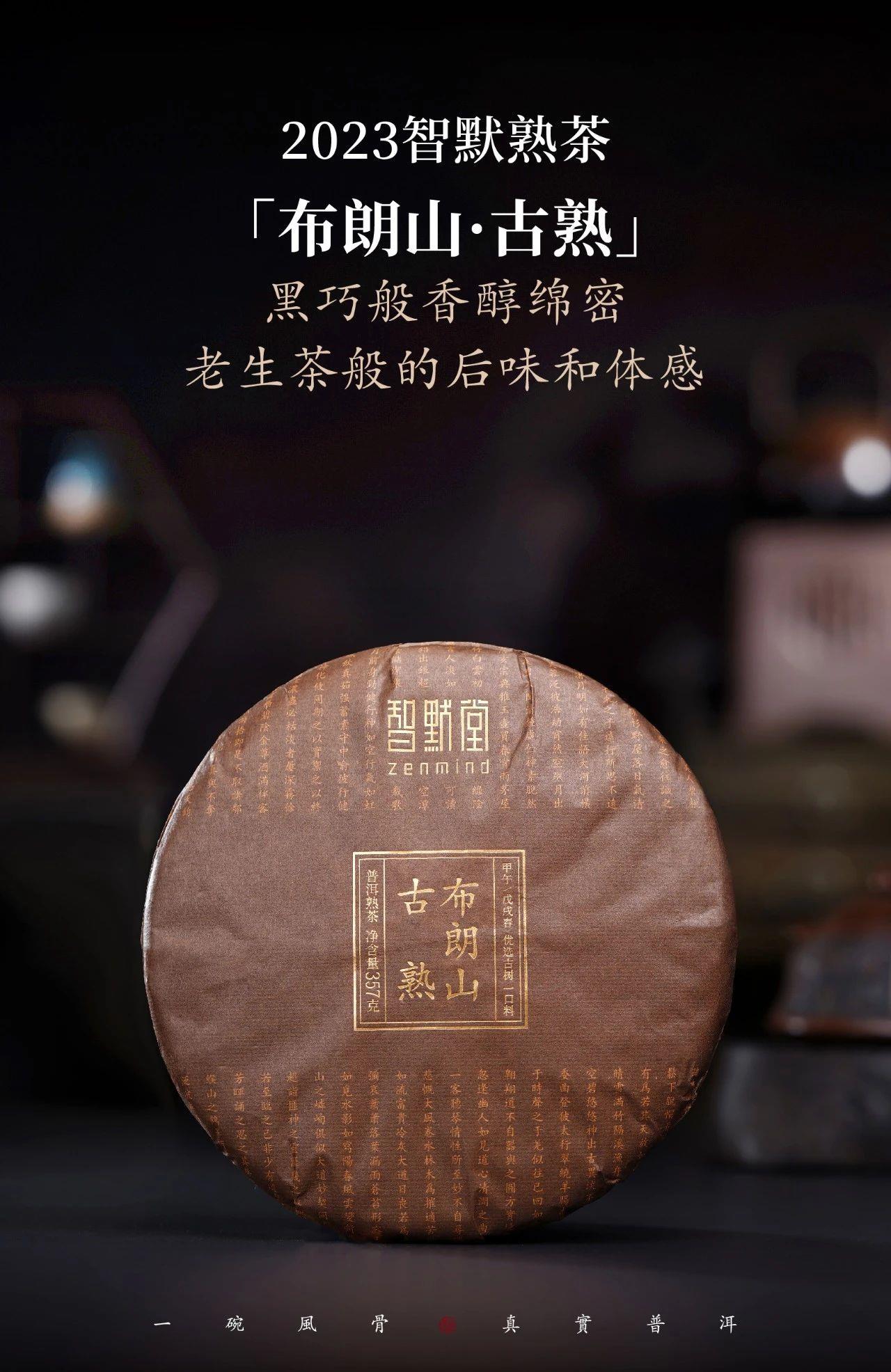 2023年智默堂以“甘苦相依”为核心推出「布朗山古熟」名山熟茶答谢款,精制布朗山古树春料,以“180天小堆离地慢发酵”、慢养工艺精制,如今历经两年陈化,好熟茶该有的山韵不减,更显醇厚馥郁,茶汤浓稠如蜜,黑巧、木质香交织,入口甘苦相依,清凉感如盛夏林间穿行,回甘绵长如人生余韵。